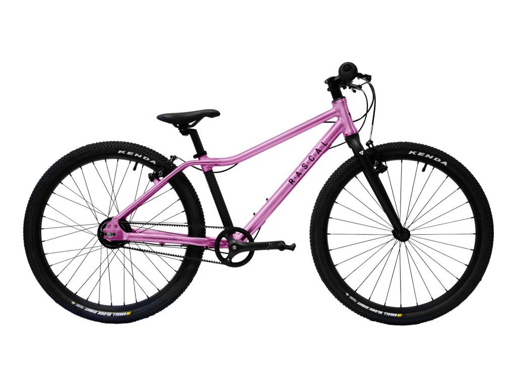 Model RASCAL 24 staví na lehkém hliníkovém rámu s polotransparentní barevným lakem, který je dostupný v pěti barevných odstínech. Mezi výhody řemenového pohonu patří zejména jeho nižší hmotnost a bezúdržbovost. Planetová převodovka nabízí jednoduché a snadné řazení, které je ideální pro malé jezdce. Díky uzavřené konstrukci je převodovka chráněna před nečistotami a vyžaduje minimální údržbu. Navíc umožňuje řazení i v klidu, což je pro děti bezpečnější a pohodlnější.