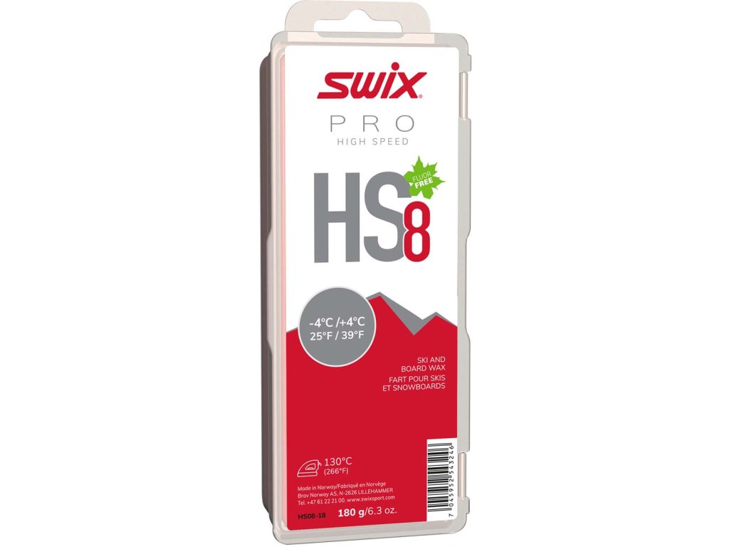 HS8 je skvělý vosk jak pro promazávání nových nebo nově nastrukturovaných lyží, tak pro trénink. Může být použit i jako závodní vosk v kombinaci s práškem nebo urychlovačem jako finální vrstvou. Jednoduše se nanáší a dobře se s ním pracuje. Doporučená teplota zažehlování: 130°C.Nahrazuje LF08X. Teplotní rozsah: -4°C/ +4°C